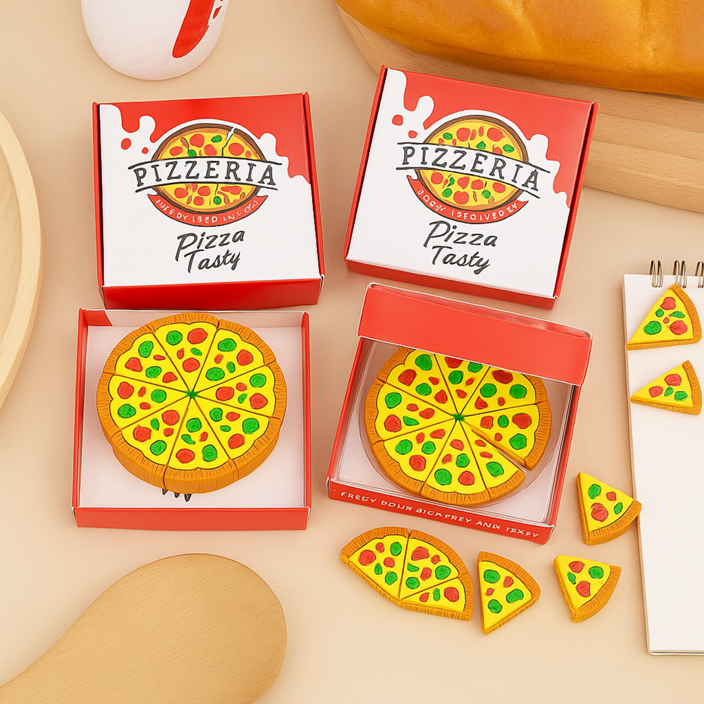 Add a slice of fun to your desk with this playful pizza-shaped eraser! Perfect for erasing mistakes with a cheesy twist, it’s a tasty treat for students, artists, and pizza lovers alike. Brighten up your stationery collection and make corrections deliciously fun!