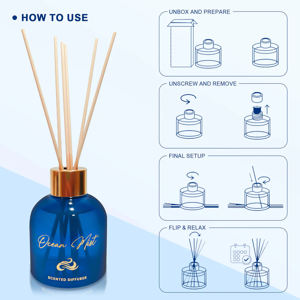 Bring the refreshing breeze of the ocean right into your home with the Oriental Reed Diffuser in Ocean Mist. This 100ml diffuser gently releases a crisp, aquatic fragrance that lifts your spirits and brightens any room. Perfect for adding a playful splash of freshness, it’s an easy way to create a calming, seaside vibe without leaving your space. Just set it up and let the ocean mist whisk you away!