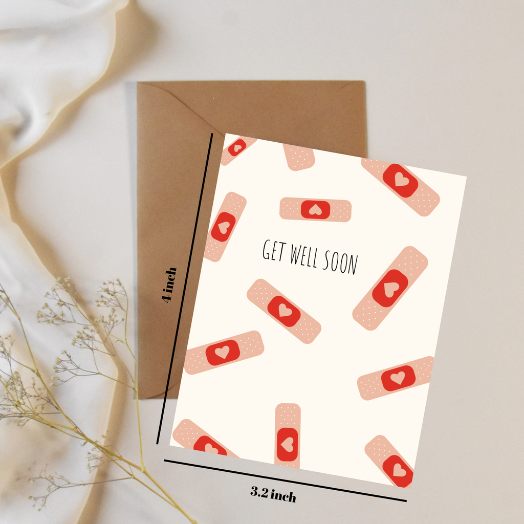 Send some love to a friend or family member with this "Get well soon" heart greeting card. Let them know you're thinking of them and wishing them a speedy recovery. Perfect for bringing a smile to their face during a tough time.
