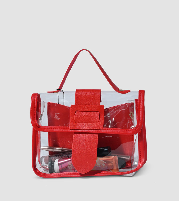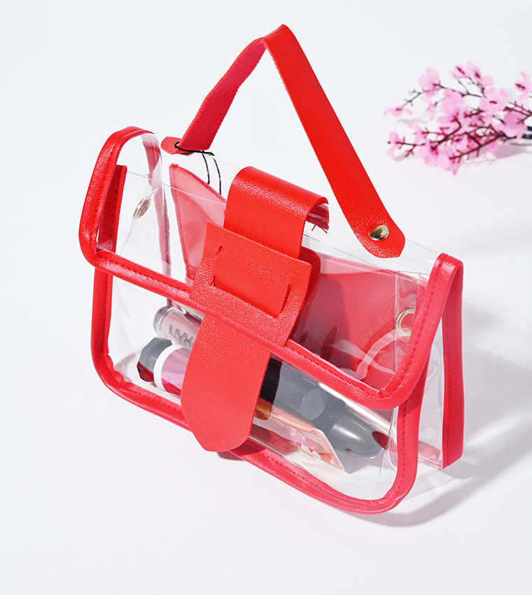 Organise your beauty essentials in style with this transparent red toiletry bag. The vibrant red hue adds a pop of colour, while the clear PVC material allows you to easily locate items inside. With multiple compartments and a secure zippered closure, this spacious bag keeps your makeup, skincare, and grooming products neatly arranged during travel. The durable construction ensures long-lasting use. Measuring 30 cm x 20 cm x 10 cm, it offers ample space for all your toiletries. Lightweight and water-resistant, this chic toiletry bag is a must-have for your next getaway.