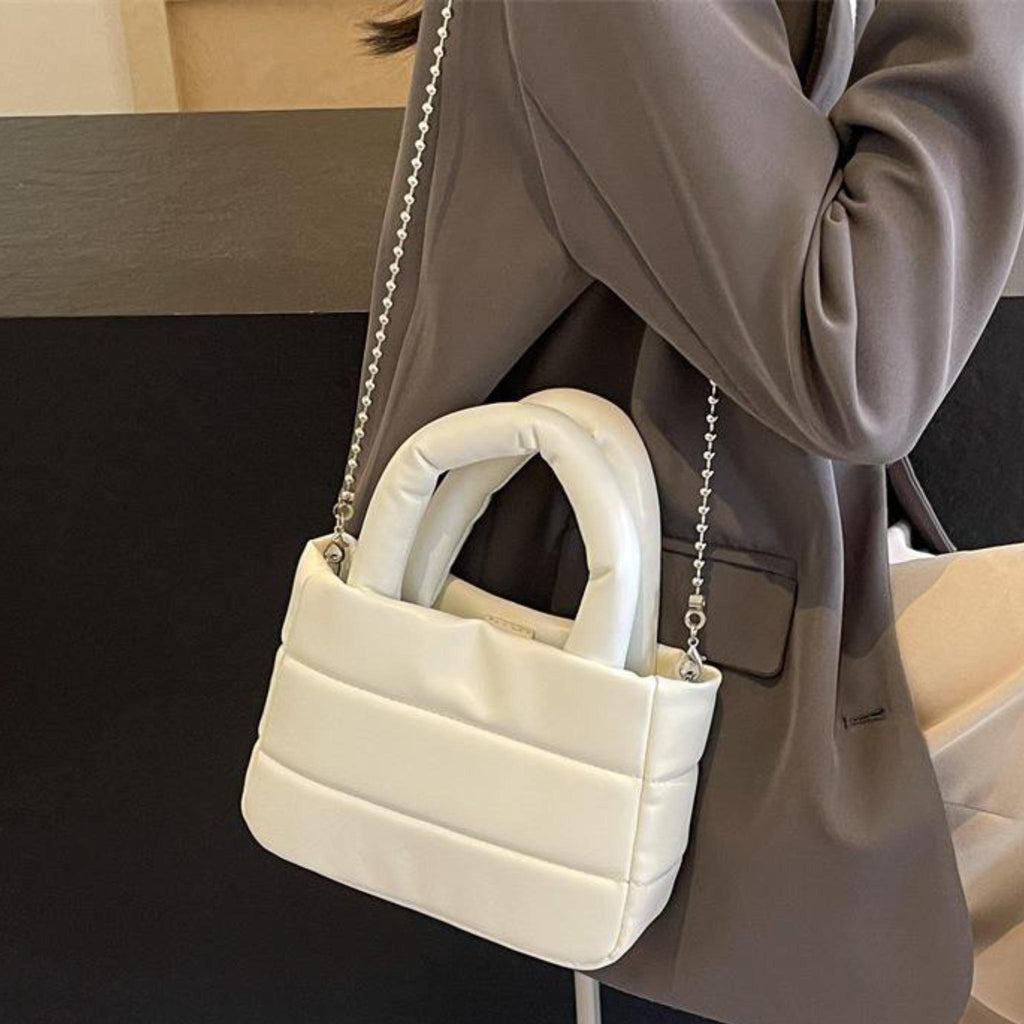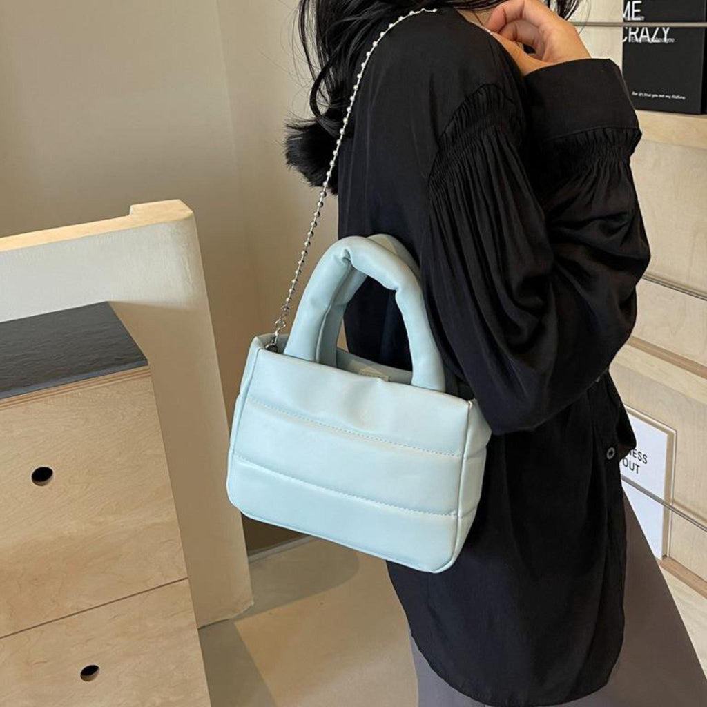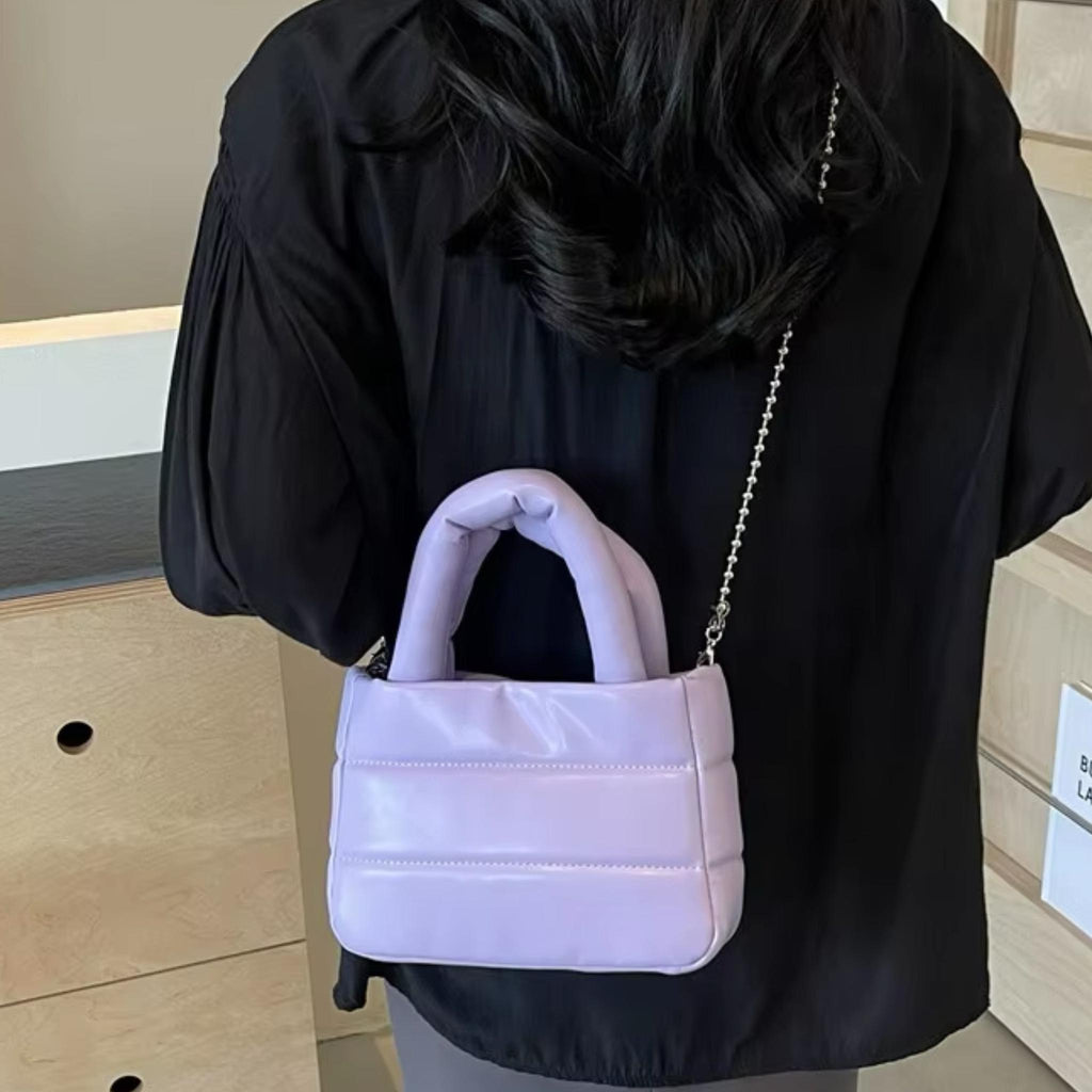 Add a pop of fun to your outfit with this Hand Bag Puffer, available in four adorable colors. Its stylish design pairs perfectly with the shiny silver sling attachment, making it easy to carry wherever you go. Compact yet roomy, it’s the perfect playful companion for your daily adventures.