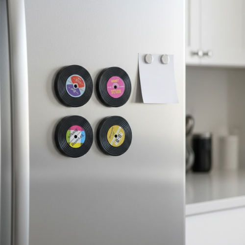 Transform your kitchen into a music lover's paradise with these vibrant Fridge Magnet - Disc designs! This pack of 4 features eye-catching CD and vinyl-inspired artwork that celebrates your passion for music. Each magnet showcases bold, colorful disc graphics perfect for displaying on any metallic surface. Whether you're a collector, music enthusiast, or looking for a fun gift, these playful magnets add personality and nostalgia to your fridge. Durable and lightweight, they keep your notes, photos, and memories perfectly in place while bringing groovy style to your home.