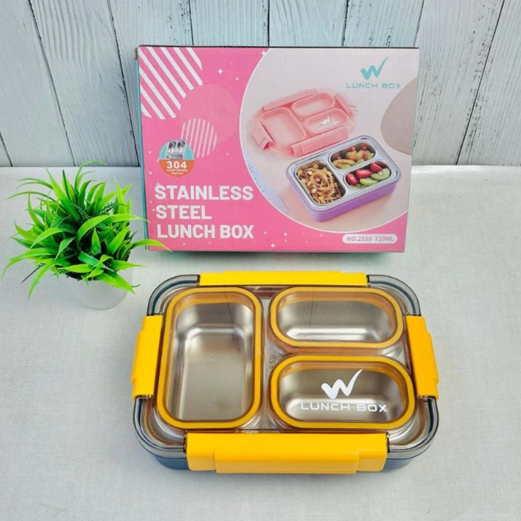 Pack your lunch with ease using this stainless steel lunch box. With 3 compartments, it's perfect for both kids and adults. Say goodbye to boring lunches!