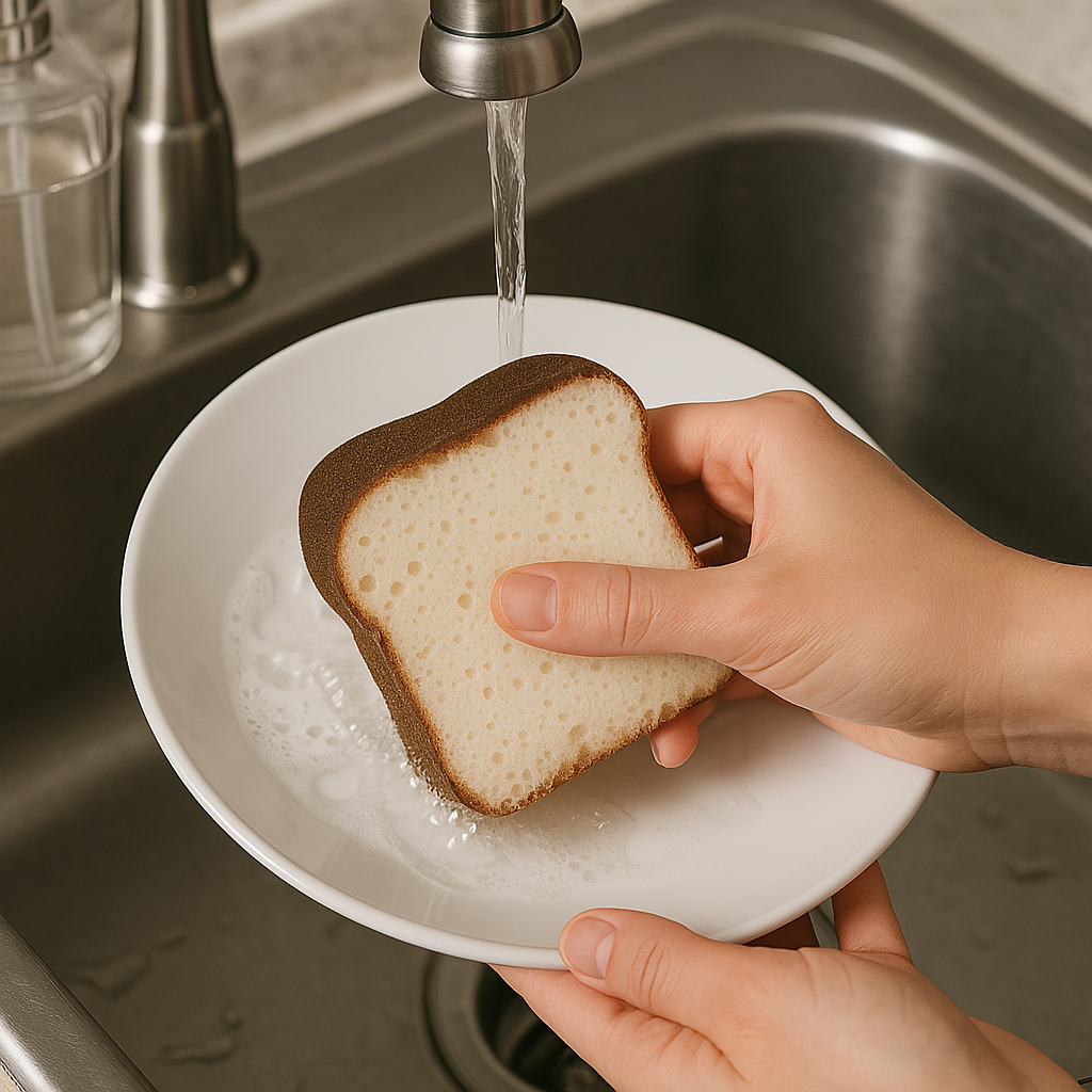 Transform dishwashing into a breeze with our whimsical Dish Scrubber, inspired by bread sponges! This clever kitchen companion features a uniquely textured surface that effortlessly banishes stuck-on food and grease from your favorite cookware. Gentle enough for non-stick pans yet tough enough for everyday grime, it's the quirky helper your sink deserves. Make cleanup fun again!