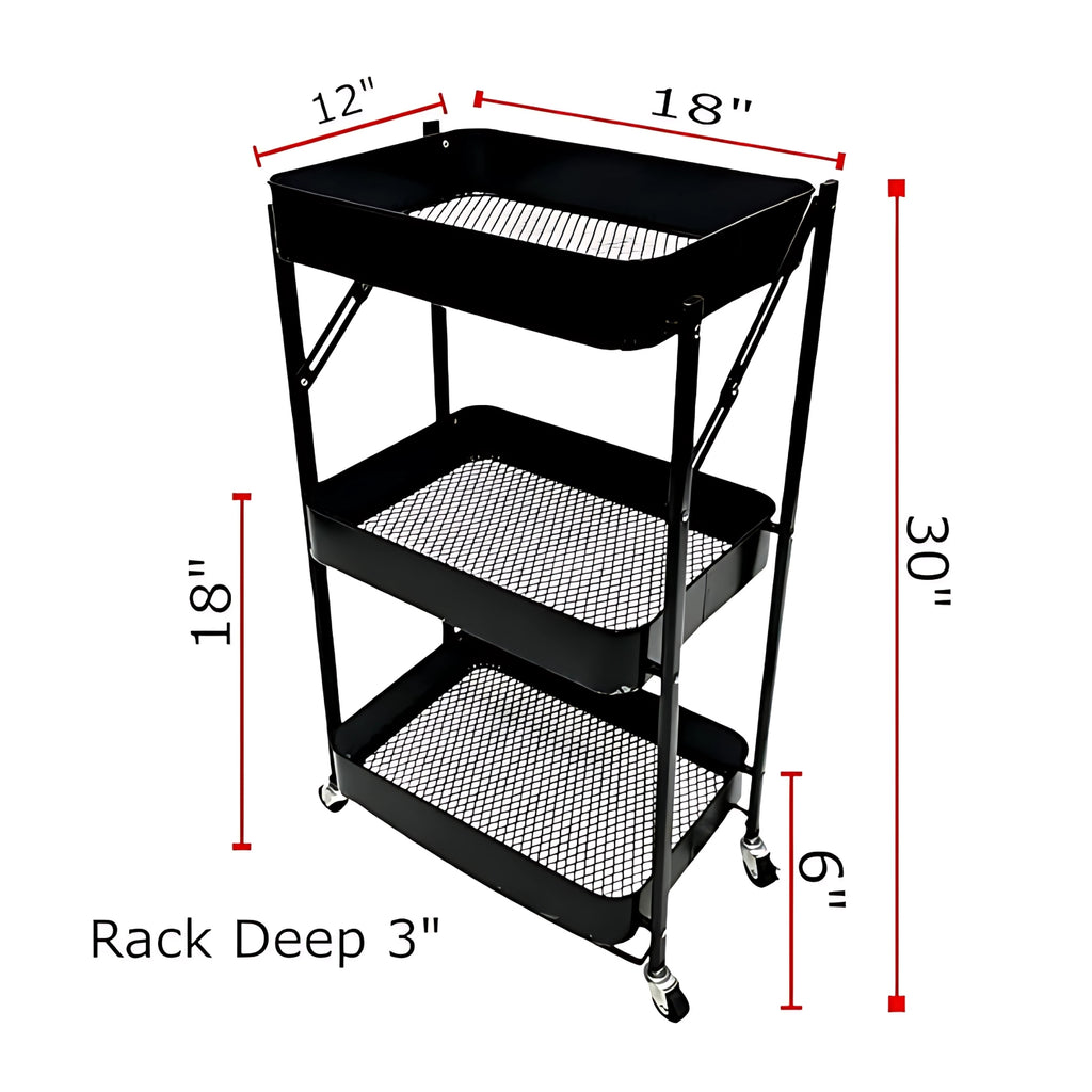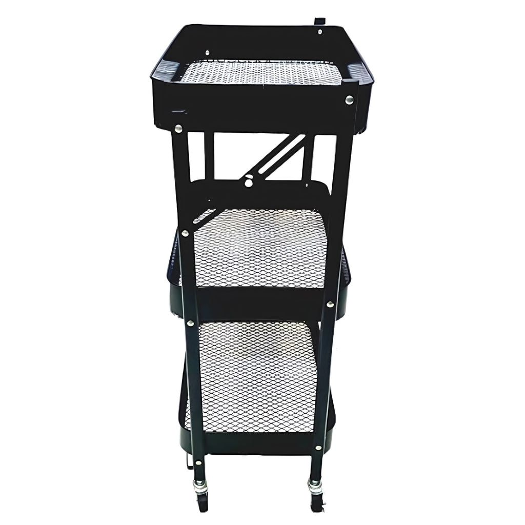Maximize your space with our sleek black storage stand. With three layers, it's perfect for organizing all your essentials. Say goodbye to clutter and hello to efficiency!