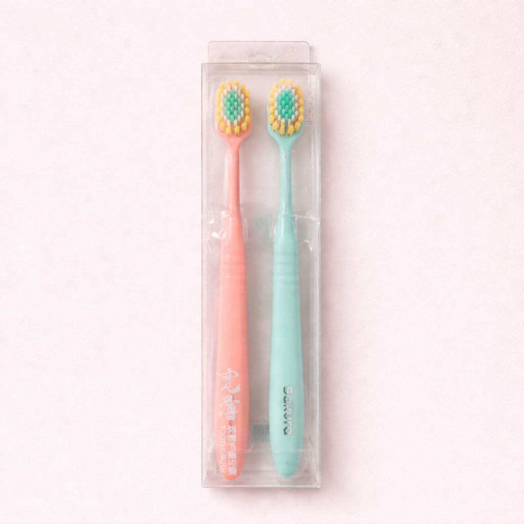 Transform your daily dental care into a moment of refined elegance with this curated pair of pastel toothbrushes. Thoughtfully designed for the discerning individual, each brush marries aesthetic appeal with purposeful functionality. The delicate pastel palette brings a whisper of contemporary style to your bathroom vanity, while the carefully crafted bristles deliver gentle yet effective cleaning. Ideal for those who believe that even the smallest details of your morning routine deserve attention and grace. A sophisticated choice for personal care that doesn't compromise on beauty.