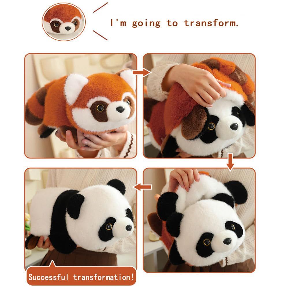 Meet your new cuddly companion: a soft, reversible toy that flips from an adorable panda to a charming red panda! This two-in-one plush brings double the fun and cuteness, perfect for playtime or snuggles. Switch between your favorite furry friends with a simple flip and enjoy endless smiles.