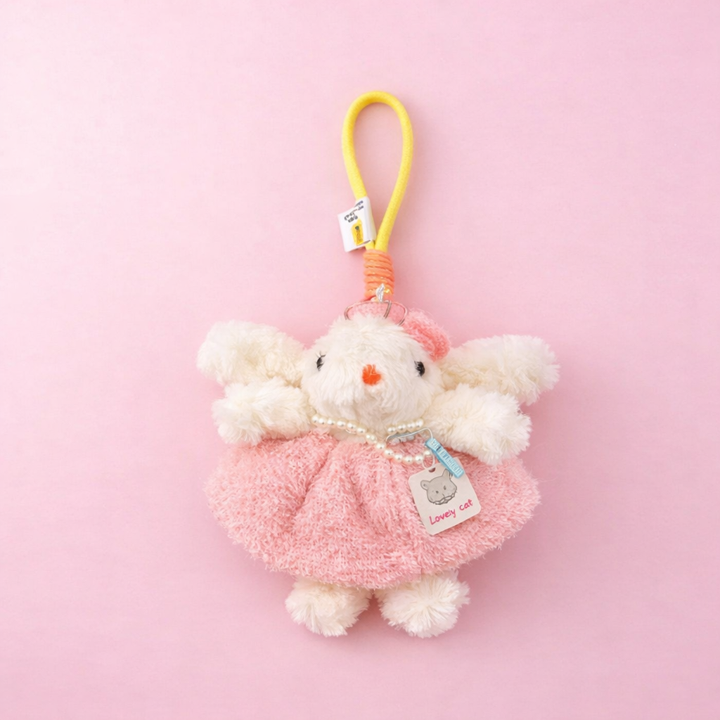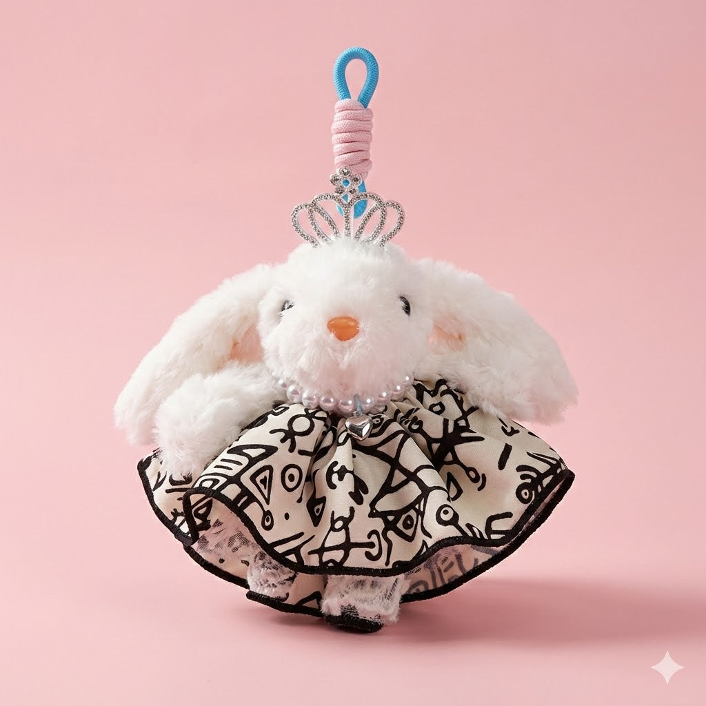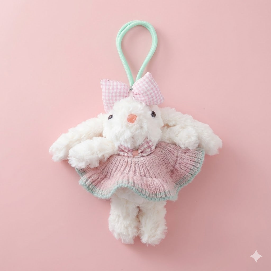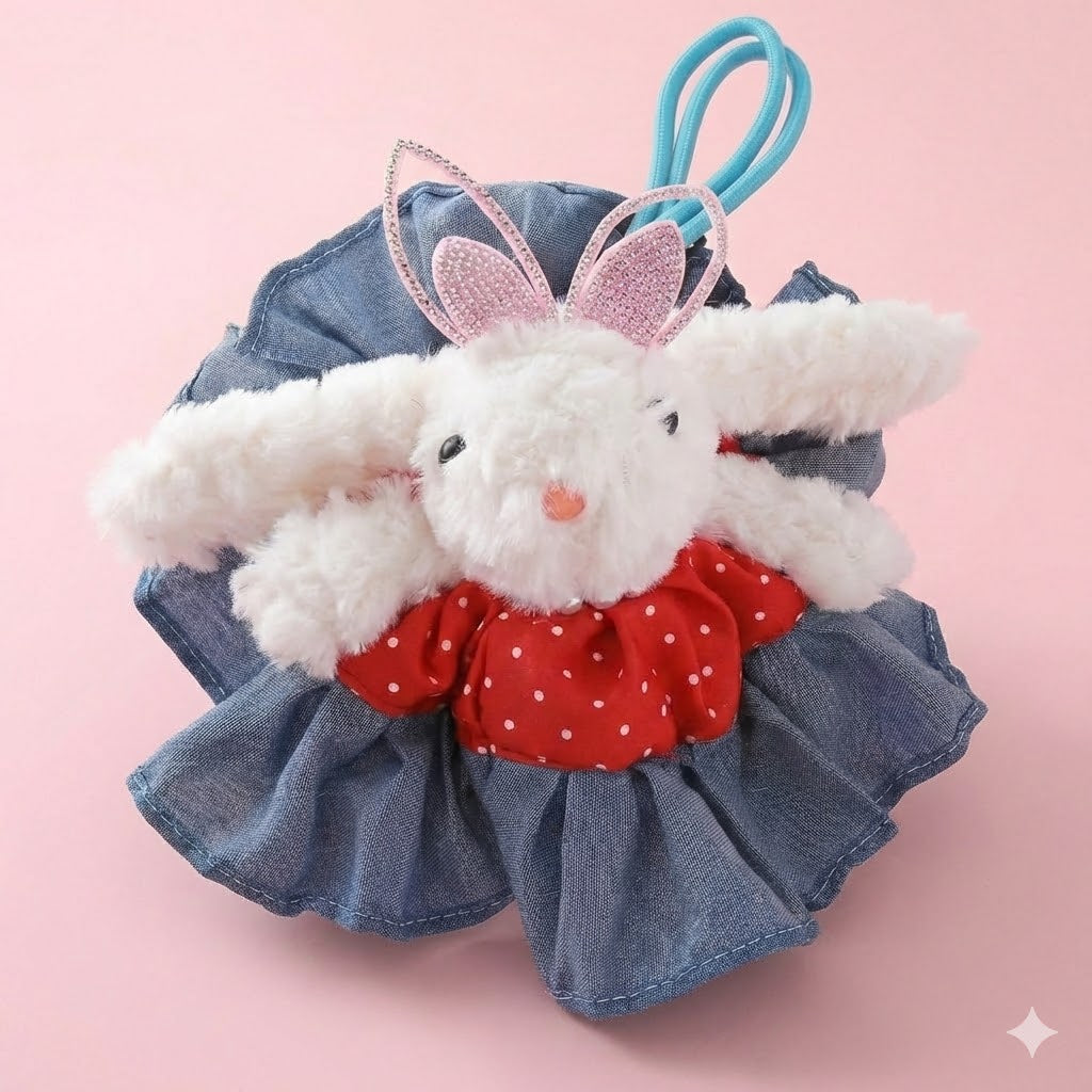 Hop into style with this adorable bunny bag charm! Featuring a cute bunny design with a convertible skirt that transforms into a functional scrunchie, it's the perfect accessory for your bag and your hair. Attach it to your favorite purse for a pop of personality, then slip off the skirt to secure your ponytail whenever you need it. Playful, practical, and utterly charming—your new go-to accessory combo!