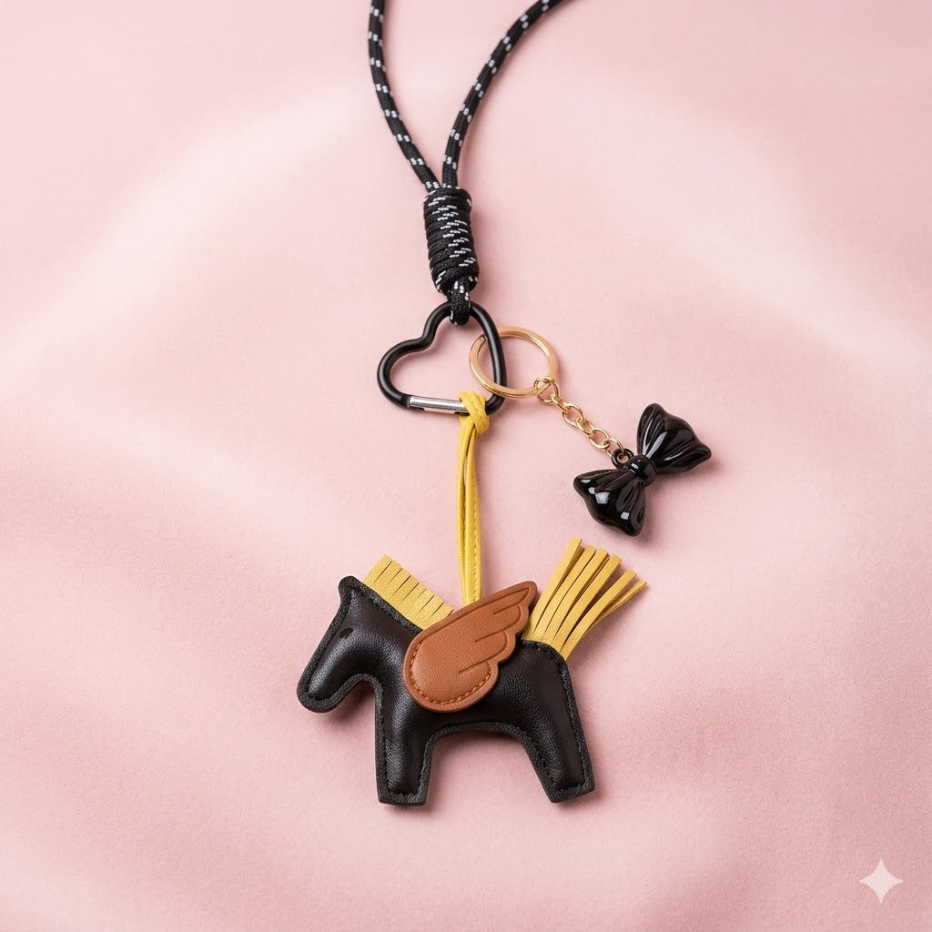 Add a touch of equestrian charm to your everyday carry with this delightful bag charm. Featuring an adorable horse design crafted from quality leather, it brings a cute and aesthetic appeal to your bags, backpacks, or keychains. Perfect for animal lovers and those who appreciate thoughtful accessories, this charm combines whimsy with elegance. Durable and lightweight, it's an ideal way to personalize your style while keeping your essentials organized and within reach.