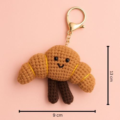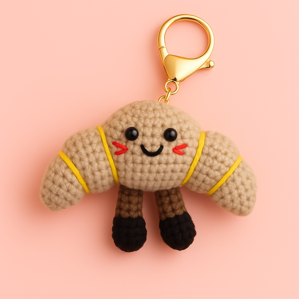 Add a delightful French-inspired touch to your bag with this adorable crocheted croissant charm! Handcrafted with meticulous detail, this tiny pastry-shaped accessory brings whimsy and warmth to your everyday carry. Perfect for personalizing backpacks, tote bags, or keychains, it's a conversation starter that celebrates your love for all things cozy and charming. Lightweight and durable, this playful accent piece is ideal for anyone who appreciates quirky, handmade accessories with personality.