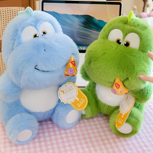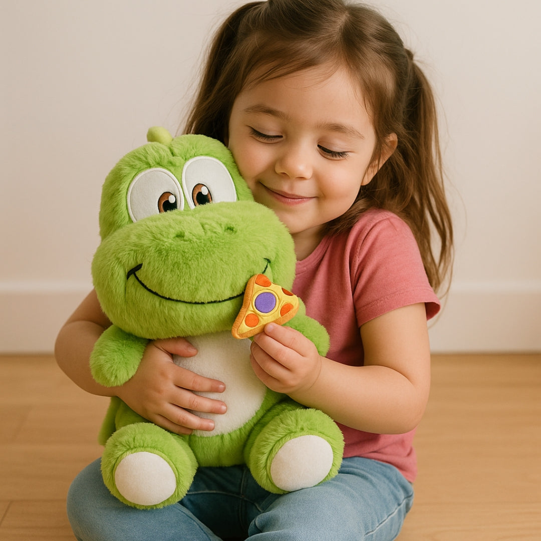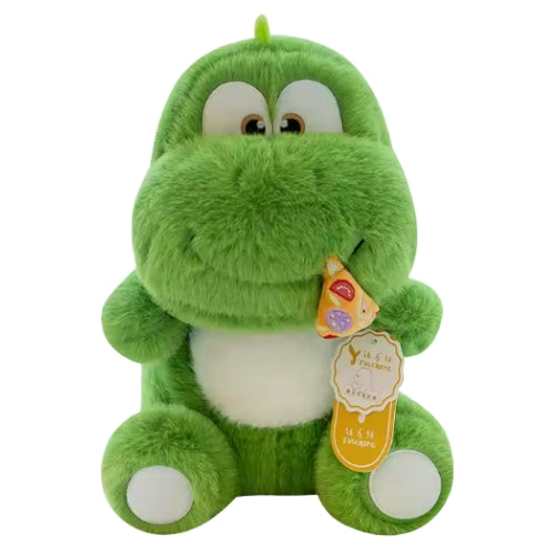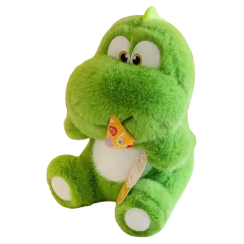 Meet Dino Bella, the quirky and lovable soft toy! With its bright green color and adorable smile, this small dino is sure to bring a smile to your face. And don't forget about the surprise pizza feature - just pull and watch it go back automatically. Perfect for kids (and kids at heart)!