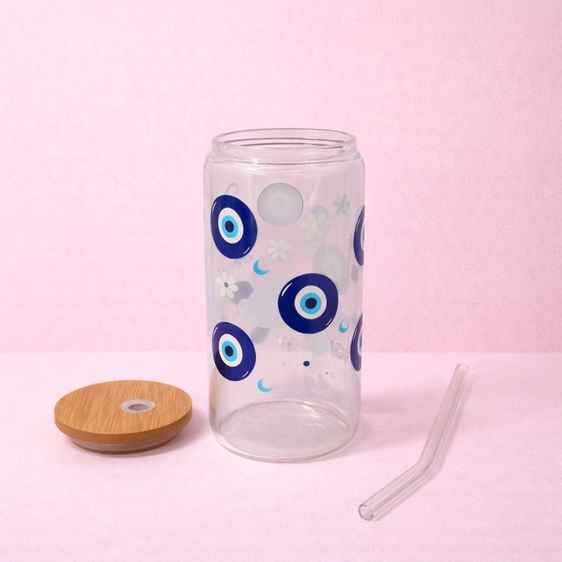 Elevate your hydration ritual with this refined glass tumbler with Evil Eye design , thoughtfully designed for the discerning individual. Crafted from premium glass, this 350 ml vessel combines functionality with artistic flair, featuring an enchanting collection of motifs—delicate bee illustrations, vibrant cherry designs, protective evil eye symbols, and charming pet paw prints. The included straw adds both convenience and eco-conscious appeal to your daily routine. Perfect for beverages hot or cold, this sophisticated tumbler makes an elegant statement while keeping your drinks at the ideal temperature. A versatile companion for home, office, or on-the-go moments.