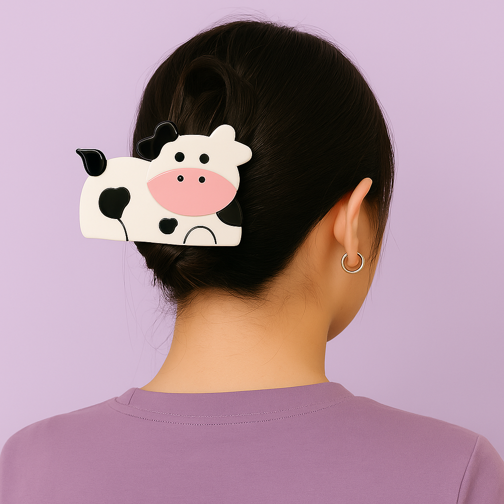 Add a fun twist to your hairstyle with this playful Cow Hair Claw! Perfect for keeping your hair neatly in place while showing off a quirky, charming design. Lightweight and easy to use, it’s a delightful accessory that adds personality to any look. Embrace your wild side with this cute and practical hair claw!