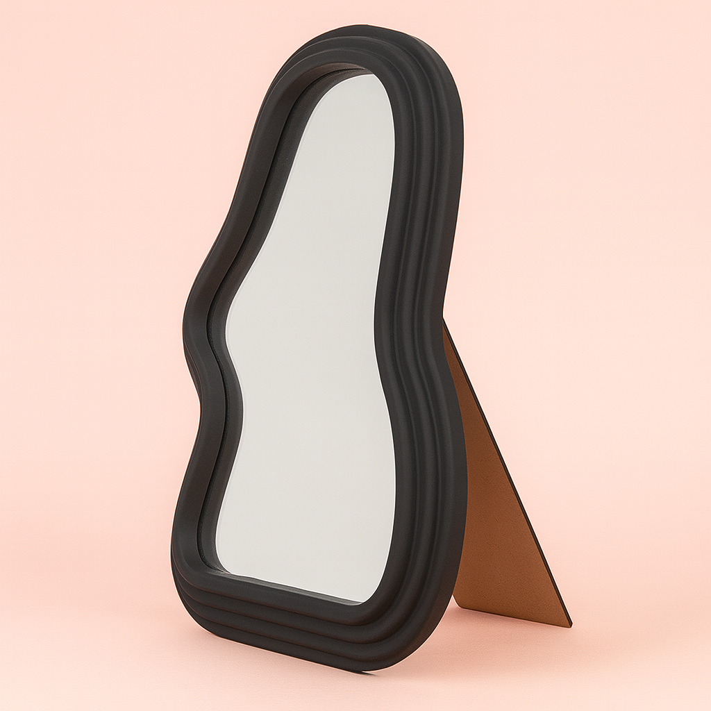 Reflect your style with this captivating abstract mirror that transforms any space into an art gallery. Featuring bold, geometric patterns and contemporary design elements, it's the perfect blend of function and flair. Whether you're checking your reflection or admiring the artistic composition, this statement piece brings personality and visual intrigue to your walls. Make every glance a moment of creative inspiration.