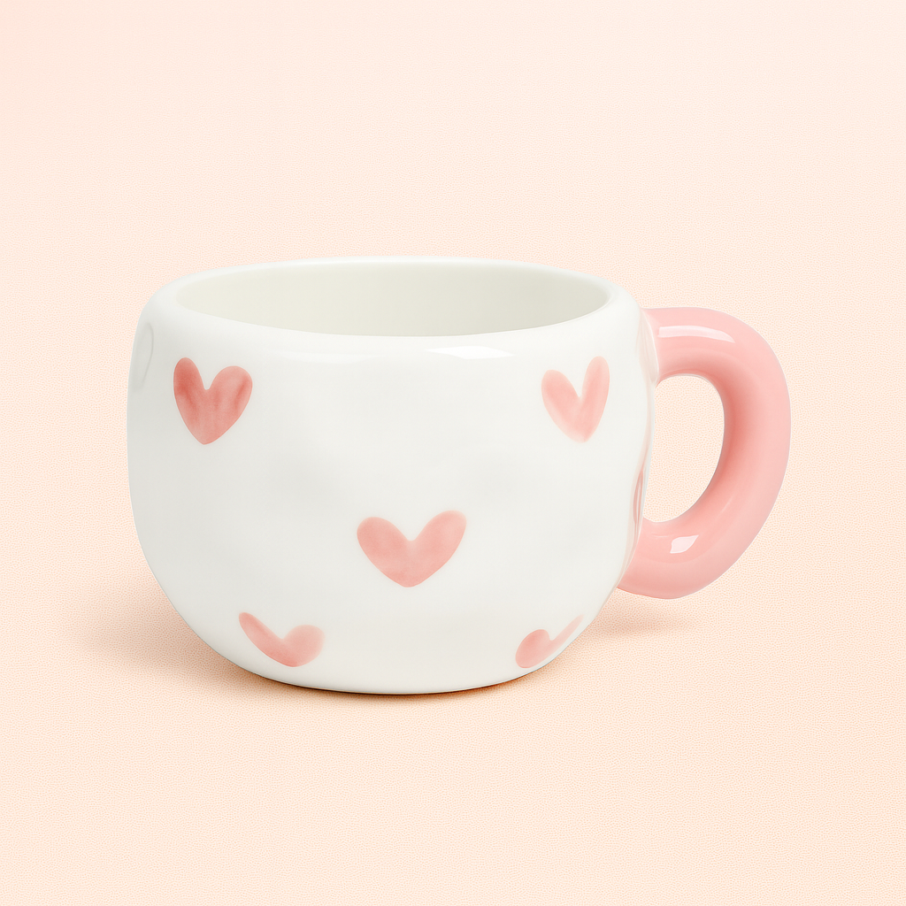 Brighten your day with this playful mug featuring an adorable heart shapes design. Its charming aesthetic adds a fun, loving vibe to your coffee or tea time, making every sip feel extra special. Perfect for spreading joy or gifting to someone who loves cute and cheerful accents.
